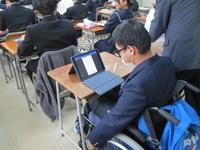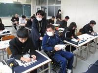 当日は、5校時に数学Aと書道、6校時に論理表現Ⅰ(英語)とスポーツ総合の体育に参加しました。授業を体験し、教室の賑わいと楽しそうな雰囲気に心地よさを感じたようです。