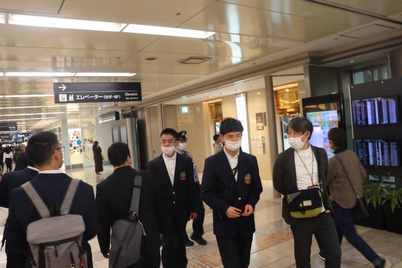 初めて飛行機に搭乗する生徒も。先生と一緒に「行ってきます!」 | 羽田空港に到着。昼食後に空港内を見学しました。 |
