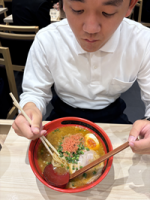 昼食はグループごとに調べたお店へ。写真は「えびそば」 |