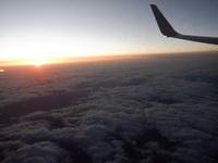 楽しい時間もあっという間に、帰りの飛行機から夕陽が見えました。 |
