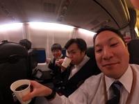 機内でも、みんなでお揃いのコーラを「いただきます!」 |