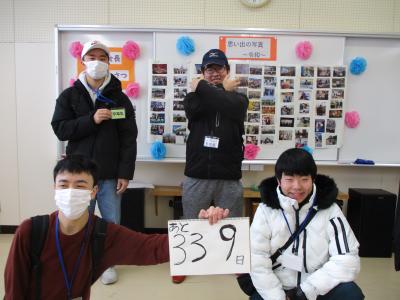 入り口前で一枚。いよいよ入場です。 | 被り物を購入した生徒も。お気に入りだったようで、一日着けました! |