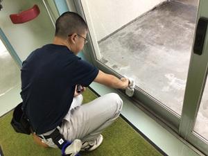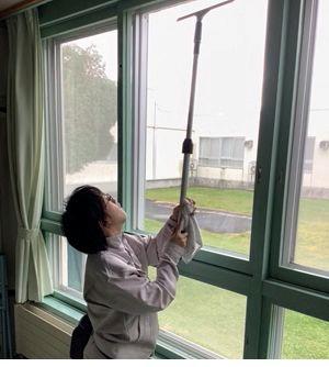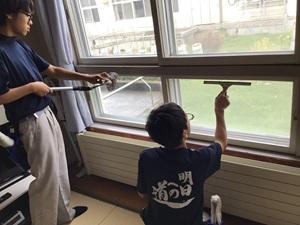 1年4組 奉仕活動「寄宿舎の窓拭き」