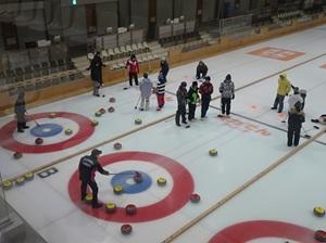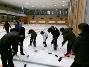 12月10日(水)オカでんアリーナ(青森市スポーツ会館)にて 実際にやりながらカーリング教室を行いました。カーリングを実際に体験しながら投げ方や道具、ルールを学習してきました。生徒はストーンを滑らせ、ハウスに入れたり相手のストーンを弾いたりして楽しみました。事後学習では、生徒から「休みの日にまたやってみたい。」「試合を観戦してみたい。」と感想が聞かれ、カーリングに対する興味が高まったようです。