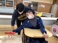 12月10日(水)オカでんアリーナ(青森市スポーツ会館)にて 実際にやりながらカーリング教室を行いました。カーリングを実際に体験しながら投げ方や道具、ルールを学習してきました。生徒はストーンを滑らせ、ハウスに入れたり相手のストーンを弾いたりして楽しみました。事後学習では、生徒から「休みの日にまたやってみたい。」「試合を観戦してみたい。」と感想が聞かれ、カーリングに対する興味が高まったようです。