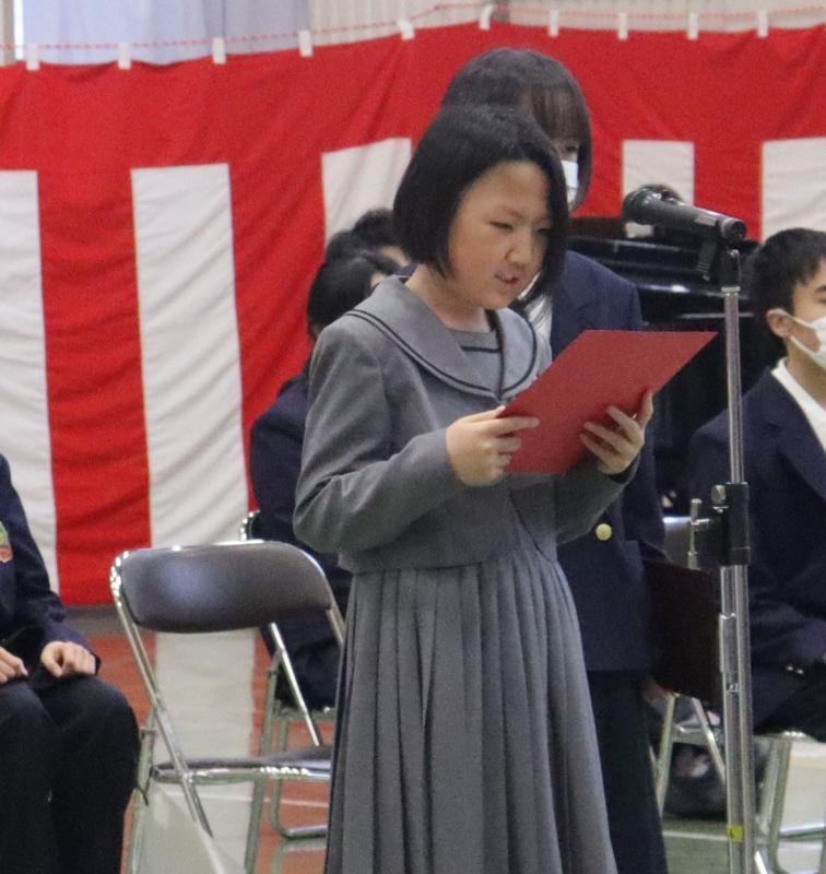 西田沢分教室代表として、全員の前であいさつをしました。 | 今日からここが僕たち・私たちの学校です。力を合わせてがんばろう! |