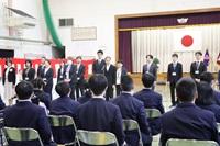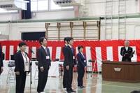 これまで高等部単独校であった青森第一高等養護学校に青森第二養護学校小・中学部西田沢分教室が併設されました。入学式では、小学部3名、中学部1名、高等部8名の新しい児童生徒が仲間入りしました。校歌も二校分、校旗も二校分、とても新鮮な式となりました。